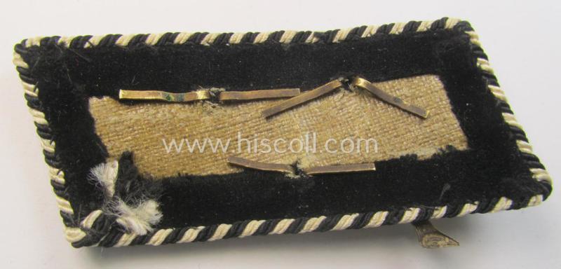 This is an attractive - fully matching and actually not that easily encountered! - pair of (I deem): 'Stahlhelmbund'- (ie. 'Der Stahlhelm' o. Bund der Frontsoldaten (Sta)') collar-patches (ie. 'Kragenspiegel') showing the silver-toned- (and typical silvered 'Buntmetall'-based) 'Wehrsport'-devices (ie. 'Kragenspiegel-Auflagen') period-attached and that comes in an overall very nice- (albeit minimally used ie. worn and/or once-tunic-removed)-, condition. Both collar-patches - which show all their originally-attached prongs in place - are constructed from black-coloured (velvet-based) cloth- and are piped with black-and-white-toned- and/or 'twisted' braid. Both tabs do show some regular age-patina ie. tarnished surface). The black-coloured text (on which the wording 'Wehrsport' figures) does show some regular age ie. wear: something that is also valid for the silverish-finish of both devices. The set was never before in a collection and was found at a private-household in Germany. Simply an attractive and most certainly not that often encountered 'Stahlhelmbund'-related item that is accordingly priced!
