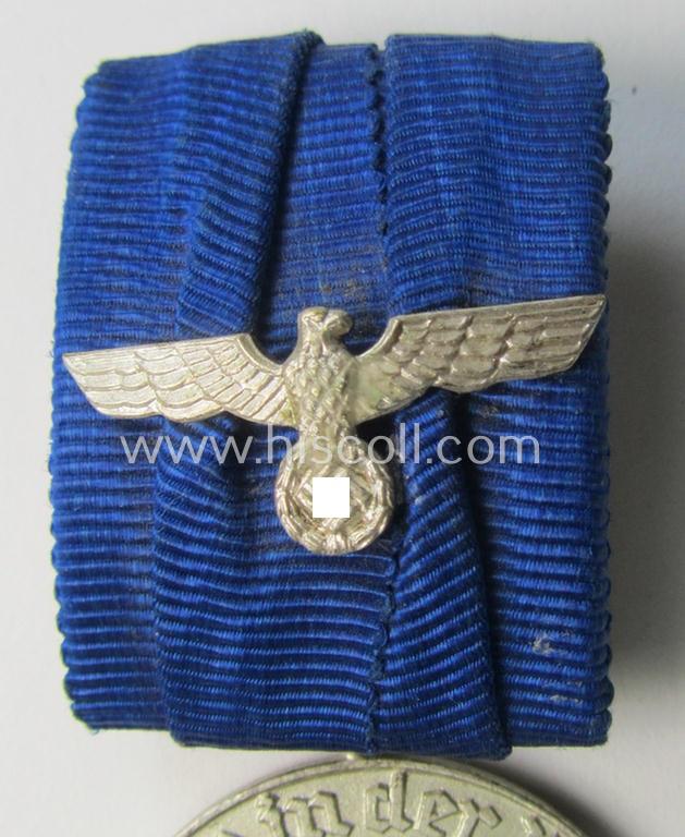 Attractive, silver-toned & detachable WH (Heeres o. KM) so-called: 'Einzelspange' showing a: 'WH-Dienstauszeichnung 4. Stufe' (as was intended for 4 years of loyal-service) and that shows a detailed, Heeres o. KM-type-eagle-device, period-attached