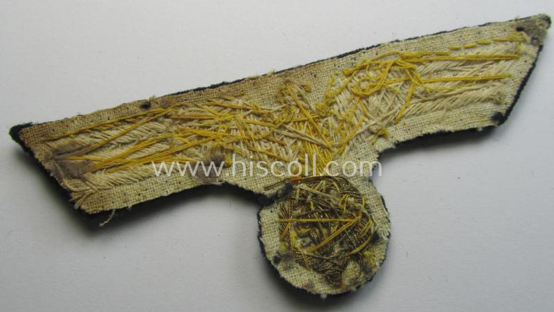 Superb - and just moderately used! - WH (Kriegsmarine) officers'-type, hand-embroidered breast-eagle (ie. 'Brustadler für Offiziere') as was executed in bright-golden-coloured braid as was intended for usage on the various officers'-pattern tunics