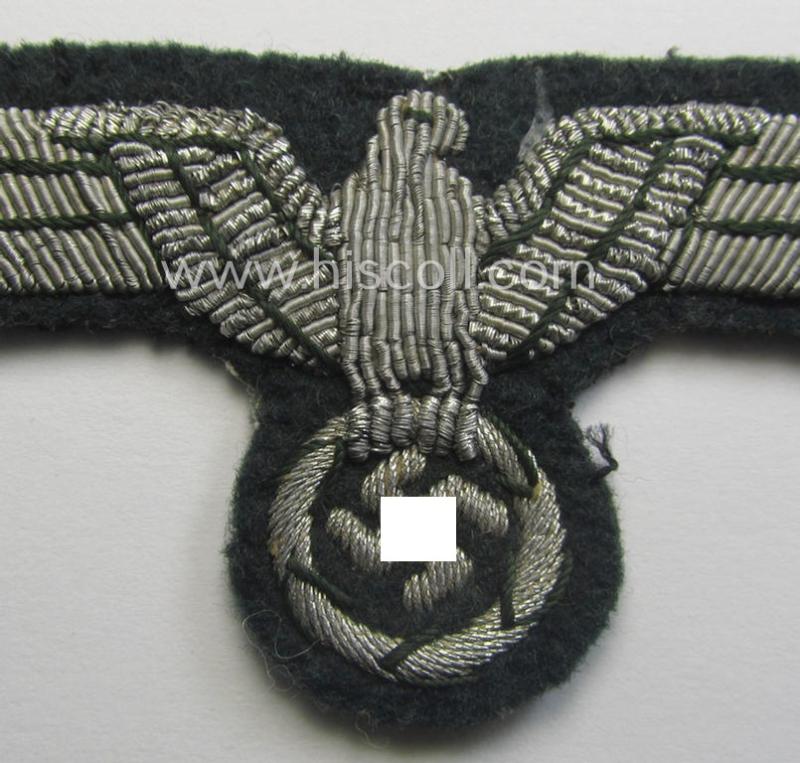 Attractive - and moderately used! - WH (Heeres) officers'-type, hand-embroidered breast-eagle (ie. 'Brustadler für Offiziere') as was executed in bright-silverish-coloured braid as was intended for usage on the various officers'-pattern tunics