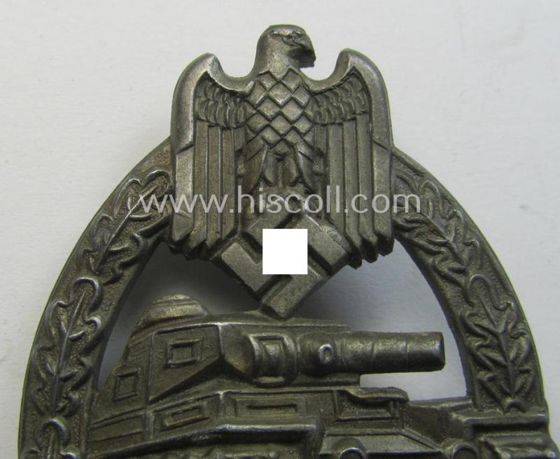 Attractive, 'Panzerkampfabzeichen in Bronze' (or: bronze-class panzer assault badge or PAB) being a neat zinc- (ie. 'Feinzink'-) version (of the so-called: 'flat-back'-pattern) as was procuced by the: 'Alois Rettenmaier'-company