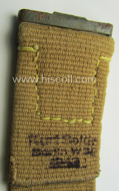 Attractive - and not that easily found! - WH (Heeres ie. LW etc.) 'tropical-issued'- and entirely 'web-based' belt (ie. 'Koppelriemen') being a maker- (ie. 'Kurt Seidel - Berlin W 36 - 1943'-) marked and/or 95 cms.-sized example