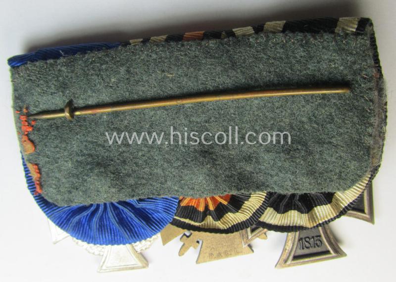 Attractive, three-pieced 'WWI'- and/or TR-related medal-bar (ie. 'Ordenspange') resp. depicting a WWI-period: 'EK II.Kl.', a: 'FKK 1914-18' and a: 'TD-Ehrenzeichen der 2. Klasse'