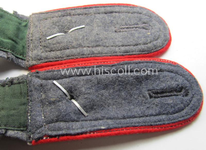 Neat - and/or fully matching! - pair of WH (Luftwaffe) NCO-type shoulderstraps as piped in the bright-red branchcolour as was intended for a: 'Feldwebel o. Wachtmeister der Flak-Artillerie-Truppen'