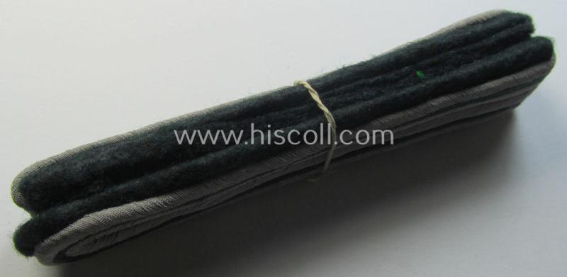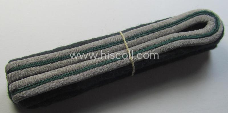 This is a very attractive - and actually quite rarely found! - darker-green- (ie. silver-) coloured, officers'-type shoulderboards (ie. 'Schulterstücke für Offiziere des SHD') as was specifically intended for a: 'Zugführer' serving within the: 'Sicherheits- u. Hilfsdienst o. SHD' and that comes in an overall very nice- (ie. simply never used- ie. 'virtually mint'- and still 'tied-together'-, condition. The attractive - and somewhat thin-shaped! - shoulderboards measure approximately 10 cms. in lenght each and are nicely 'backed' with darker-green-coloured wool. They are constructed from (typical silver- ie. green-toned) braid and show the darker-green-coloured (and woolen-based) underlays and smaller-sized tongues attached (as can be noticed on the pictures). The pieces originated from an advanced cloth-insignia-collection that was compiled over a 40-year-period and that I acquired for the web-site. I am convinced that this is a neat 'SHD'-related officers-pattern shoulderboard-pair of unmistaken scarcity!