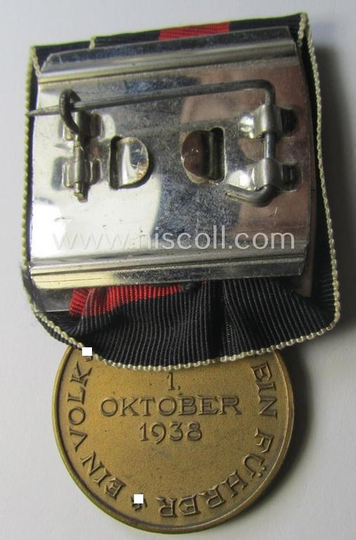 'Einzelspange' (ie. single-pieced medal-bar) showing a Czech 'Anschluss'- (ie. occupation-) medal: '1 October 1938'