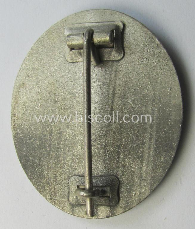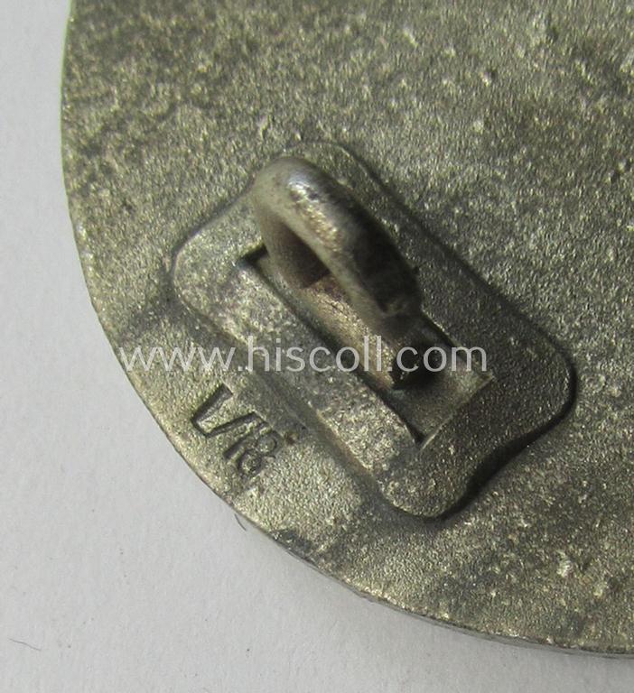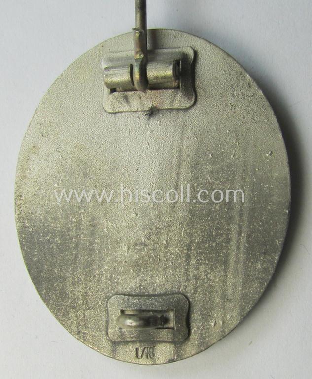 This is a very attractive - truly rarely seen and just moderately used and worn! - example of a silver-class wound-badge (or: 'Verwundeten-Abzeichen in Silber') being an example that is clearly maker-marked under the catch-set-up (with the makers'- ie. LDO-designation: 'L/18' signifying that it is a piece as was produced by the company: 'B.H. Mayer's Kunstprägeanstalt' as was based in the town of Pforzheim ie. 'Hersteller 26') and that comes in an overall very nice- (albeit just moderately used and/or worn-), condition. The neat wound-badge - which is executed in nicely tarnished, silvered zinc-based metal (ie. 'Feinzink') - shows some obvious wear ie. age and has a correct - and fully functional - pin- and/or (unusally pillow-crimped) catch (-set-up) in place. The badge has, however, never been cleaned and shows evident tarnish and/or wear: it truly retains most (ie. all) of its silverish finish.. Simply an attractive and very unusually seen, silver WB that is I deem accordingly priced!