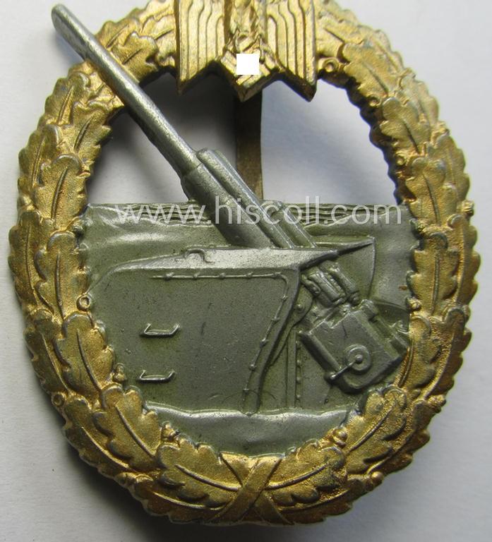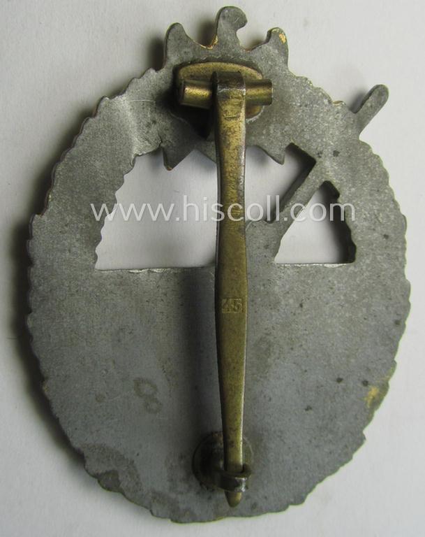 WH (KM) 'Marine-Artillerie-Abzeichen' being a maker- (ie. '45'-) marked- and/or zinc- (ie. 'Feinzink'-) based example by the: 'Franz Jungwirth'-company