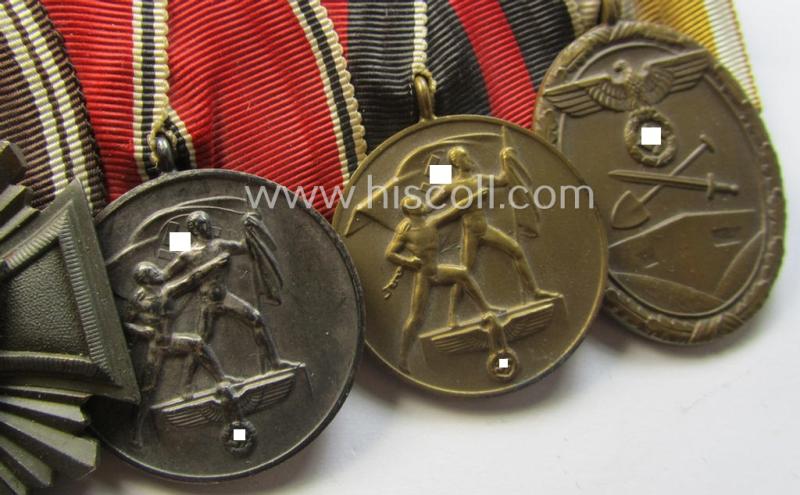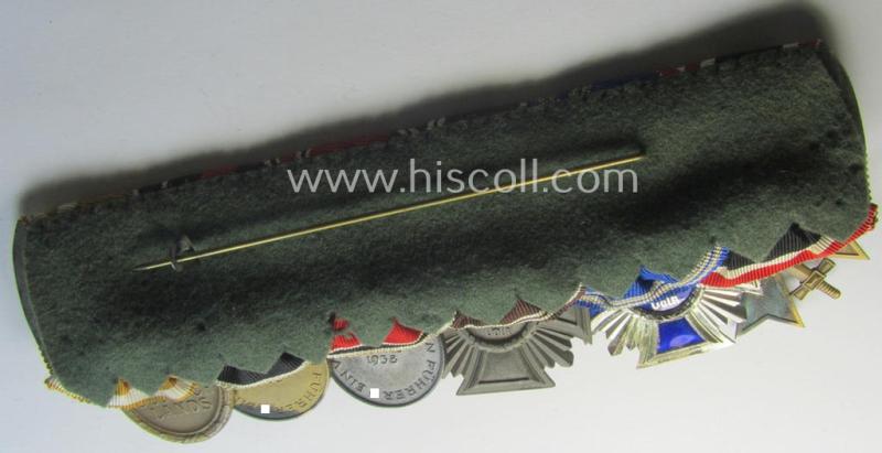 6-pieced N.S.D.A.P.-related 'Ordenspange' showing a: 'KvK II.Kl. m. S.', a: D.A. in Silber' (ie. '2. Stf. für 15 Jahre t.D.'), a: 'D.A. in Bronze' (ie. '3. Stf. für 10 Jahre t.D.') two 'Anschluss'-medals and a: 'Westwall'-medal