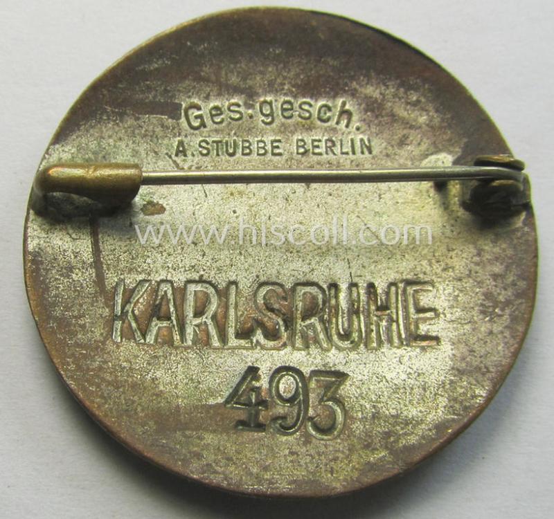 DRK (ie. 'Deutsches Rotes Kreuz') nurses'-badge entitled: 'Schülerin', being a medium-sized version showing an engraved bearers'-number: ('493'), town: ('Karlsruhe') and/or makers'-designation