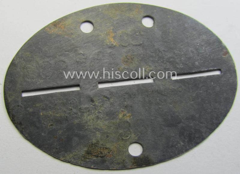 This is an attractive - and actually very scarcely encountered! - typical zinc-based, so-called: 'Ostvölker'- (ie. Eastern-volunteers-) related ID-disc (ie. 'Erkennungsmarke') bearing the stamped unit-designation that reads: 'Ost-Art.Abt. 752' (and as such I deem intended for a member that served within the: 'Ost-Artillerie-Abteilungs', numbered: '752' and that comes in an overall nice- (albeit clearly used and/or worn-), condition. The ID-disc - which is executed in a neatly executed letter-type - comes in an overall nice condition but does show the clear evidence of having been worn (minimally torn-out holes): it was, however, never cleaned nor polished but shows some (minimal) corrosion-marks. The disc - which is void of the soldiers' blood-group-type as more often - comes as stored for years: it originates from an extensive ID-disc-collection I recently acquired for the web-site. The back shows some dirt ie. staining (and minimal corrosion stains). It should be noted that this was one of the only two existing 'Ostvölker'-related artillery-units that saw action in France (Brittany, Normandy and Lorient!) and that was completely destoryed in late 1944. Simply an attractive - and 100% genuine! - 'Ostvölker'- ie. Eastern-volunteers-related ID-disc!