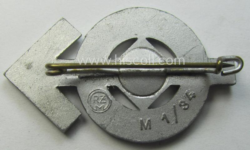 HJ- (ie. 'Hitlerjugend'-) sports-badge (or: 'HJ-Leistungsrune') of the silver-class being a maker- (ie. 'RzM - M1/34'-) marked- and/or: 'Feinzink'-based specimen