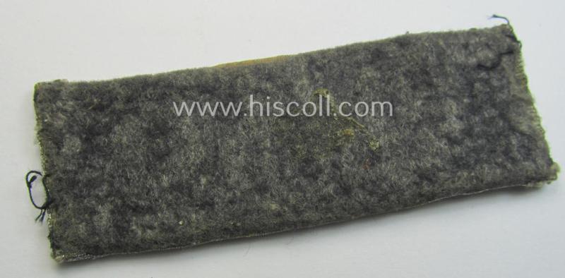 The extraordinary 'Sonderabzeichen für das Niederkämpfen von Panzerkampfwagen usw. durch Einzelkämpfer in Silber' (ie. tank-destruction badge ie. TDB in silver) on offer here is a very attractive - and truly detailed! - example showing a nicely minimally blackened- (ie. blackish-silvered- and typical magnetic!) tank-badge mounted onto its original piece of nicely 'inter-woven', silver- ie. black-woven cloth ie. braid. The piece still retains its original (three) unaltered and functional prongs and/or metal- (ie. presumably zinc-) based back-plate and retains its protective (woolen-based- and field-grey-coloured) 'backing' (as can be seen on the pictures). The piece was most certainly once worn and/or (carefully!) tunic-removed: it still shows some minimal stitching-remains (ie. holes) of having been once tunic-attached. The truly nicely preserved 'blackened-silvered'- (ie. 'Buntmetal'-based and magnetic!) tank-badge shows some minimal staining but was never cleaned nor polished. I am of course aware of the fact that this is (probably) one of the most copied awards of the TR-period: this is naturally a 100% genuine and truly worn example for which I do give a life-time garuantee (as always). I deem that I have priced this neat award accordingly to its desirability and/or unmistaken rarity!