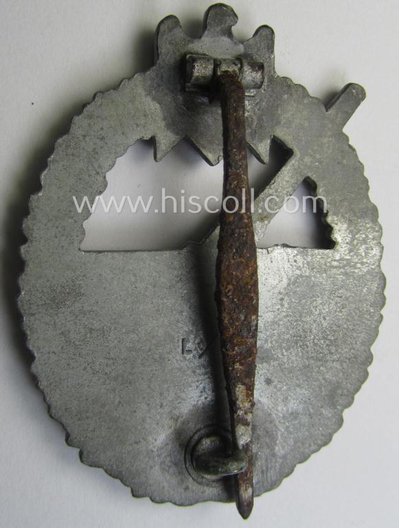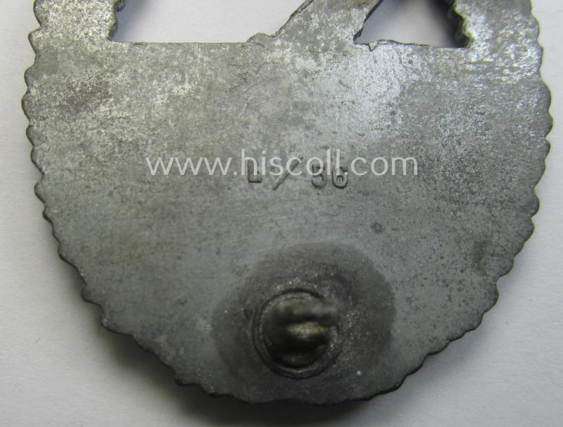 WH (Kriegsmarine) 'Marine-Artillerie-Abzeichen' being a clearly maker- (ie. 'L/56'- thus by: 'Funcke & Brüninghaus'-) marked and/or zinc- (ie. 'Feinzink'-) based example