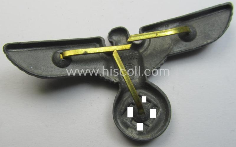 Greyish-silver-coloured- and/or: zinc- (ie. 'Feinzink'-) based (political-style) visor- (ie. 'Schirmmützen'-) cap-eagle being a detailed example that is neatly: 'RzM' and/or: 'M1/166' marked