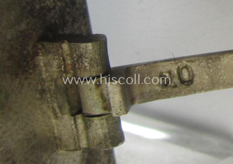 This is an attractive - and I deem just mininimally used- and/or worn! - example of an: 'Eisernes Kreuz 1. Klasse' (ie. Iron Cross 1st class) being an (I deem) mid-war-period produced neatly maker- (ie. '20'-marked thus by the maker (ie. 'Hersteller'): 'C.F. Zimmermann'-produced) example that comes as issued and/or recently found. The cross - which is a typical non-vaulted ie. non-converse-shaped as more often - has most certainly never been cleaned and retains a superb age-patina and/or great pronounced detail: its shows an (almost) fully undamaged, black-coloured- (ie. satin-like) core. This example - which is an evident specimen as was produced by the: 'C.F. Zimmermann'-company as based in the town of Pforzheim - comes naturally mounted onto its functional set-up. The back of the cross is just minimally stained (but was never cleaned nor polished though). The (straight-shaped) pin and typical catch (ie. set-up) are naturally unaltered and/or fully functional. The cross is - as stated above - an attractive example that was produced by the maker 'C.F. Zimmermann' as based in the town of Pforzheim (something that can be deducted by the makers'-designation '20' which is stamped onto the back of the pin as more often as can be noticed on the pictures). It was never part of a collection and was recently found at a private-household in Germany. I deem that this attactive - and fully untouched! - IC- first-class by the 'C.F. Zimmermann'-company is accordingly priced!