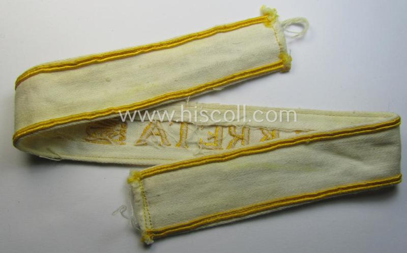 WH (Luftwaffe o. Heeres) cuff-title (ie. 'Ärmelstreifen') entitled: 'Kreta' that comes in a presumably issued- (albeit I deem never used- ie. 'virtually mint'-), condition