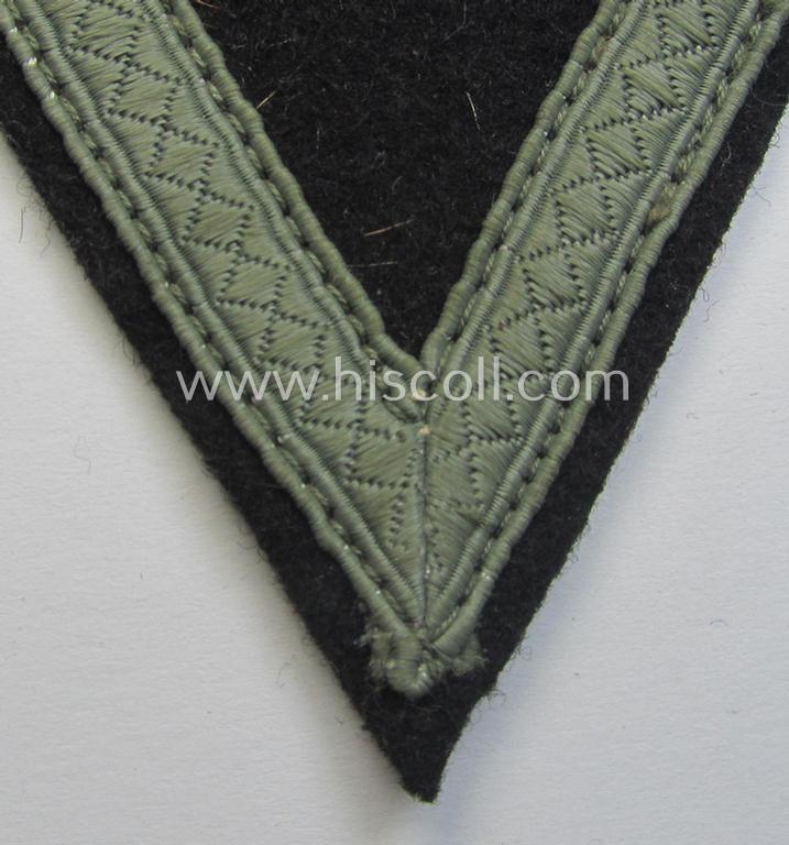 Waffen-SS- (ie. Heeres Panzer-) type 'Armwinkel' (or: rank-chevron) as executed on black-coloured wool as was intended for an: 'SS-Mann' (ie. 'Gefreiter')