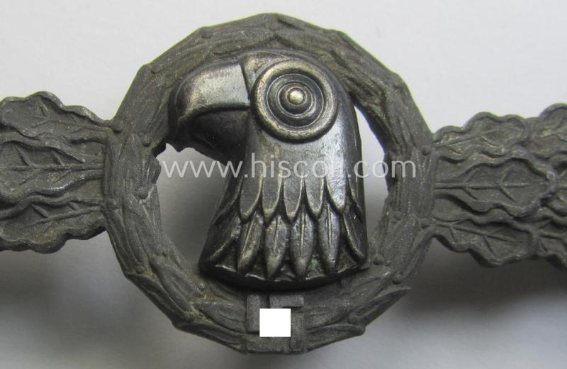 WH (Luftwaffe) 'Frontflugspange für Aufklärer in Silber' being a (typical) non-maker-marked example as (partly) executed in 'Feinzink'-based metal
