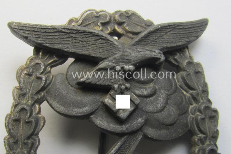 Mid- (ie. later-war-) period, zinc- (ie. 'Feinzink'-) based version of a WH (Luftwaffe) 'Erdkampfabzeichen' having a separate eagle-device attached and being a non-maker-marked example as was produced by the 'Gustav Brehmer'-company
