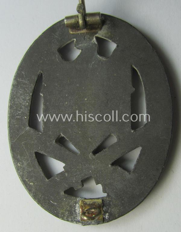 'Allgemeines Sturmabzeichen' (or: General Assault Badge ie. GAB) being a typical unmarked, zinc-based- (ie. 'Feinzink'-) and/or: 'flat-back'-version as was (I deem) produced by the: 'Rudolf Karneth'-company