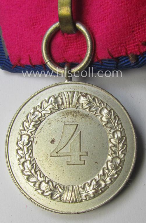 Bright silver-toned - and detachable! - WH (Heeres o. KM) so-called: 'Einzelspange' showing a: 'WH-Dienstauszeichnung 4. Stufe' (as was intended for 4 years of loyal-service) and that shows a detailed, Heeres o. KM-type-eagle-device, period-attached