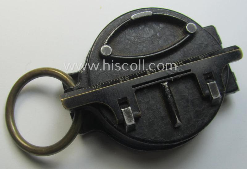 'Standard-issue'-pattern, black-coloured and/or copper-based WH-compass (ie. 'Marschkompass') which is nicely 'MK'-marked and/or individually numbered: '45817' and that came mounted onto its period 'Fangschnur'