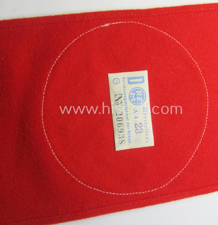 'Extra Qualität', N.S.D.A.P.-pattern, smooth-woolen-based swastika-armband (ie. 'Armbinde') that still retains its period 'RzM'-etiket