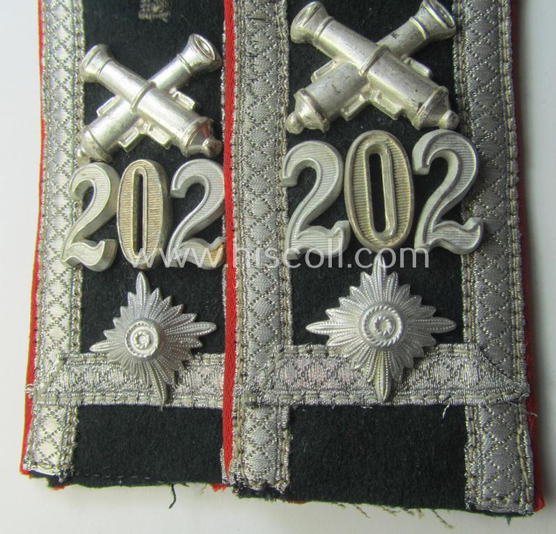 Pair of WH (Heeres) 'cyphered' (and bright-red-piped!) early-war-period- (ie. 'M36'- ie. 'M40'-type) NCO-pattern shoulderstraps: 'Feldwebel u. Waffenunteroffizier u. Mitglied des Art.-Rgts. 202'