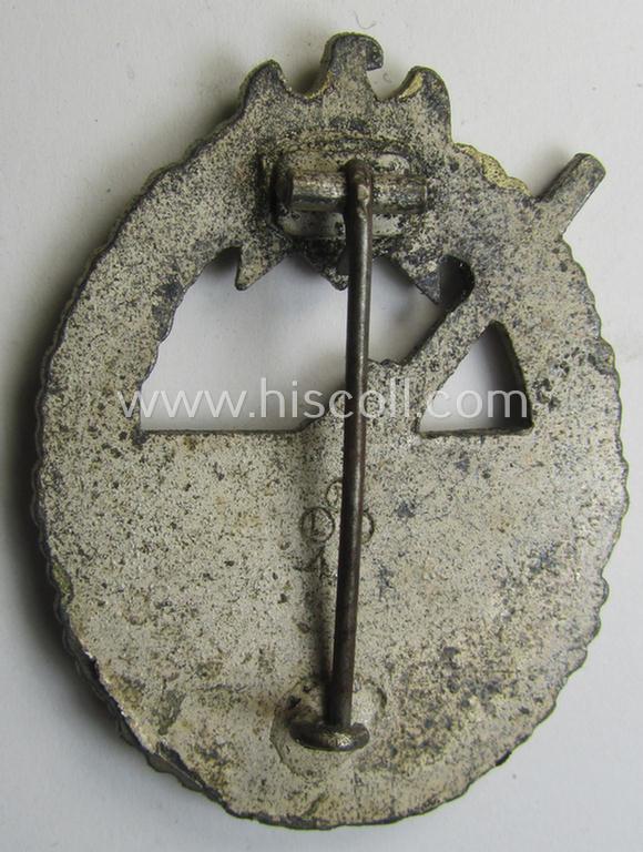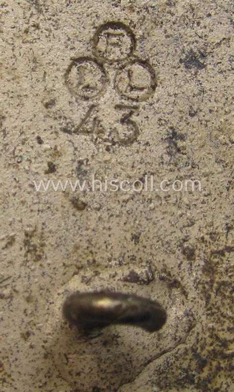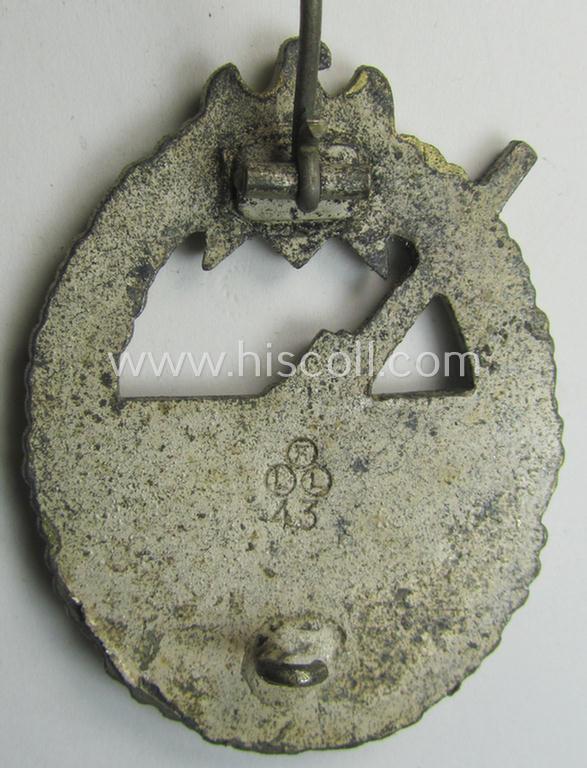 WH (KM) 'Marine-Artillerie-Abzeichen' being a maker- (ie. 'F.L.L. - 43'-) marked- and/or zinc- (ie. 'Feinzink'-) based example by the: 'Friedrich Linden'-company