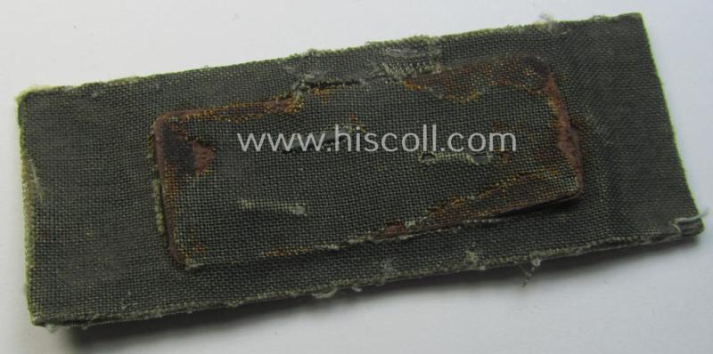 The extraordinary 'Sonderabzeichen für das Niederkämpfen von Panzerkampfwagen usw. durch Einzelkämpfer in Silber' (ie. tank-destruction badge ie. TDB in silver) on offer here is a very attractive - and truly detailed! - example (of the first pattern as was presumably produced by the company: 'Moritz Hausch AG' as was based in the town of Pforzheim) showing a nice- and just minimally blackened- (ie. blackish-silvered- and typical magnetic!) tank-badge mounted onto its original piece of nicely 'inter-woven', silver- ie. black-woven cloth ie. braid. The piece still retains its original (three) unaltered and functional prongs and/or metal- (ie. presumably zinc-) based back-plate and still retains its protective (green-toned- and/or linnen-based 'backing' (as can be seen on the pictures). The piece was most certainly once worn and/or (carefully!) tunic-removed: it still shows some minimal stitching-remains (ie. holes) of having been once tunic-attached. The truly nicely preserved 'blackened-silvered'- (ie. 'Buntmetal'-based and as stated above magnetic!) tank-badge shows some minimal staining but was never cleaned nor polished. I am of course aware of the fact that this is (probably) one of the most copied awards of the TR-period: this is naturally a 100% genuine and truly worn example for which I do give a life-time garuantee (as always). I deem that I have priced this neat award accordingly to its desirability and/or unmistaken rarity!