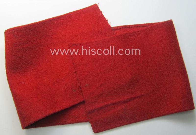 This is a truly very attractive - I deem hardly used and with certainty very scarcely encountered! - N.S.D.A.P.-(ie. SS-) pattern, smooth-woolen-based swastika-armband (ie. 'Armbinde') being an example of the so-called: 'Extra Qualität'-type and that comes in an overall very nice- (I deem just minimally used- but still 'virtually mint'-), condition. The neat piece - which is constructed from the somewhat darker-red-coloured- and/or typical 'smooth-type'- (ie. moleskin-type) wool showing a seperately attached (linnen-based) roundel and (braid-based) swastika as to be expected - comes in a very nice condition overall: it was I deem hardly used and was (I deem) once stitched-together and measures approximately 47,5 x 11 cms. The armband is not piped as to be expected and still shows its period-attached, linnen-based: 'RzM 21/37 SS'-label (something that is most certainly not always the case). The armband shows some minimal age only, simply caused by having been minimally worn and being stored as such for decades. These generic swastika-armbands were worn on the left upper-arm and were intended for usage by the various N.S.D.A.P.-party- ie. SS-members and/or officials (but were also worn by members of various other Third Reich organisations such as for example the members of the N.S.K.K., RAD, SS and/or SA to mention a few). In any case is this an attractive - and with certainty not that easily encountered! - swastika ie. SS-type 'Armbinde' of the 'Extra Qualität' that comes not that often offered for sale. I deem that this acttractive example is accordingly priced!