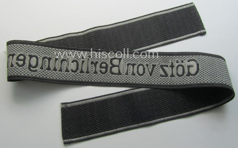 Waffen-SS 1943/44-pattern cuff-title (ie. 'Ärmelstreifen') as executed in typical 'BeVo'-weave-pattern as was intended for a member within the: '17. SS-Panzergrenadier-Division “Götz von Berlichingen”