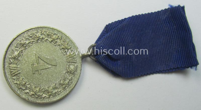 WH (Luftwaffe) bright silver-toned 'WH-DA der 4. Klasse für 4 Jahre Dienstzeit' that comes mounted onto its accompanying ribbon (ie. 'Bandabschnitt') having a silver-toned eagle-device attached