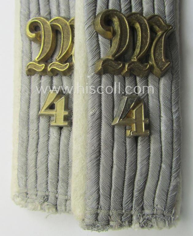 Pair of neatly 'cyphered', WH (Heeres) officers'-type shoulderboards as was intended for - and clearly worn by! - a: 'Leutnant des Maschinengewehr-Abteilungs 4'