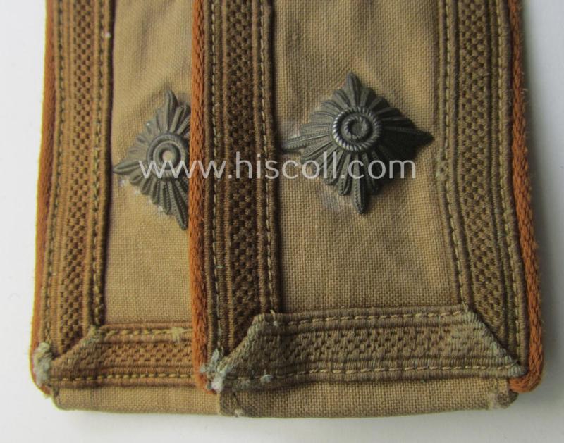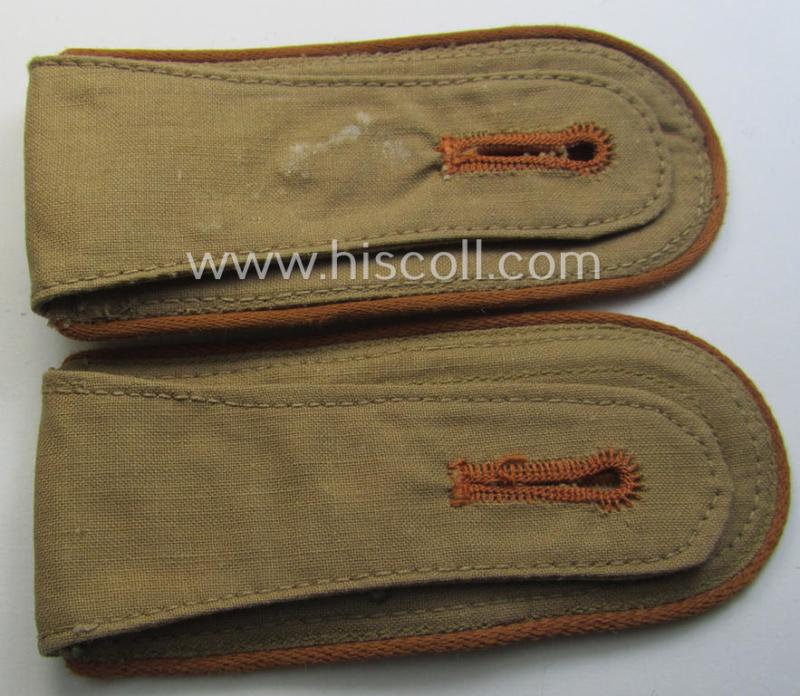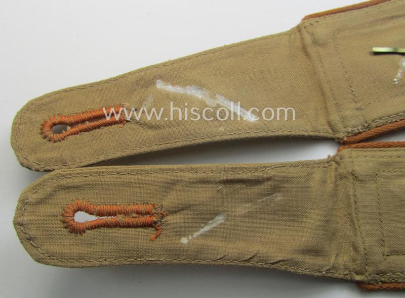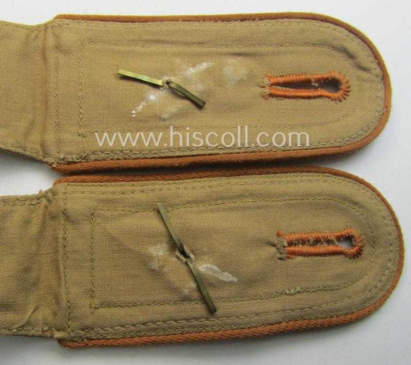 Pair of - truly used- and/or worn! - WH (Luftwaffe) 'tropical-styled' NCO-type shoulderstraps (as was specifically for usage on the tropical-shirts ie. tunics) as was intended for usage by a: 'Feldwebel der Nachrichten-Trpn.'