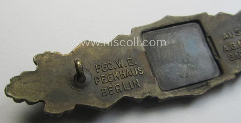 'Nahkampfspange in Bronze' (or: bronze-class close-combat clasp ie. CCC) being a maker- (ie. 'A.G.M.u.K.'-) marked- and/or minimal converse-shaped specimen having its period-attached (black-toned and steel-based) 'back-plate' in place