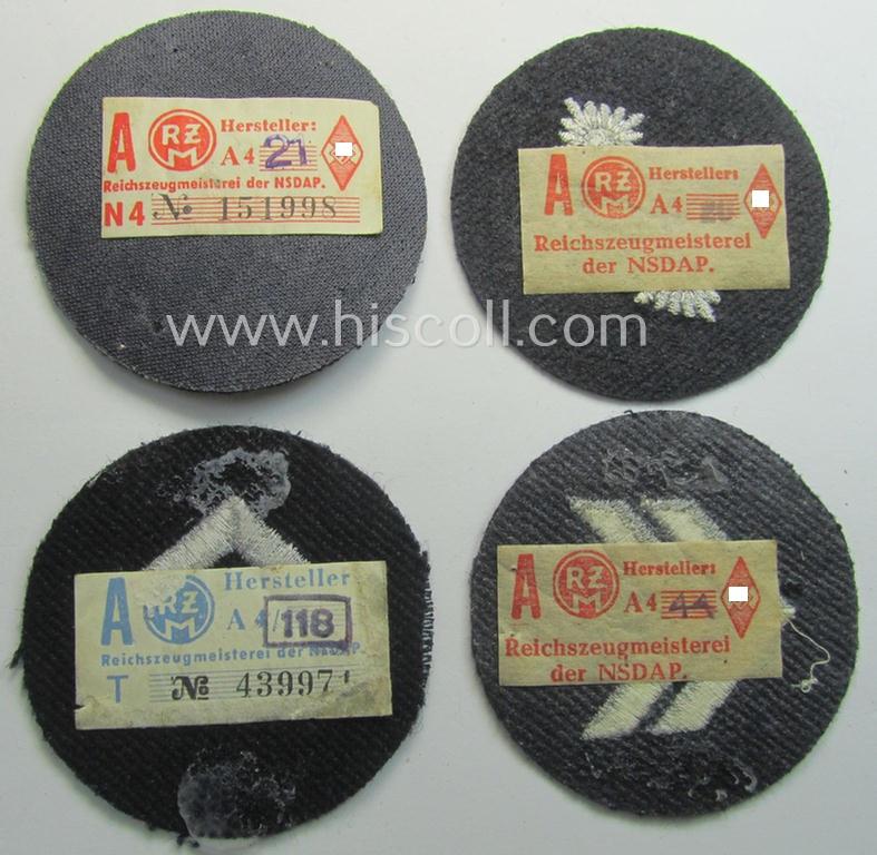Interesting - and simply never used! - 4-pieced, DJ- (ie. 'Deutsches Jungvolk in der HJ') insignia-set comprising of 4 darker-blue-toned rank-patches (ie. 'Rangzeichen') all four still retaining their period 'RzM'-etiket