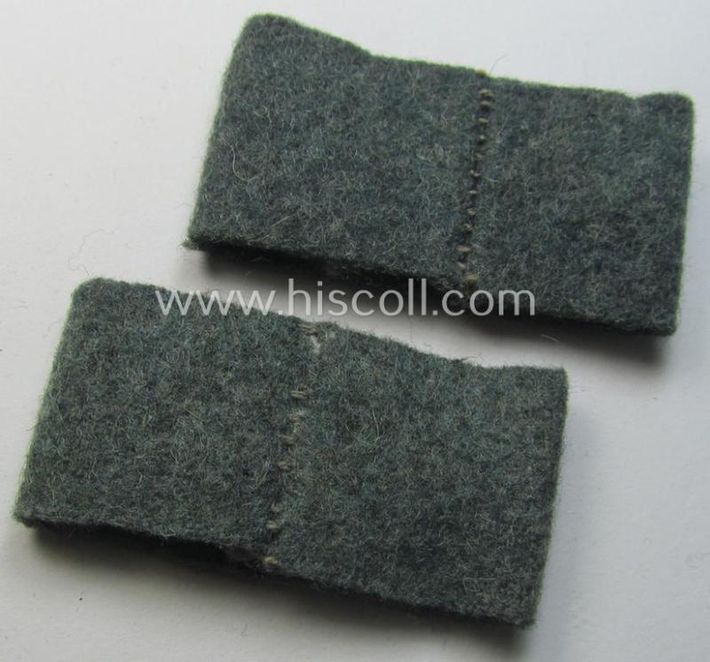 This is an attractive - truly matching and/or fully identical! - pair of WH (Heeres) 'Infanterie'-related, so-called: regimental shoulderstrap-'slip-ons' (ie. 'Schulterstück-Überschuben') as was specifically intended for usage by a: 'Soldat des Infanterie-Regiments 313' and that comes in an overall very nice- (and I deem simply never worn- nor used- ie. still 'virtually mint unissued'-), condition. The pair is neatly 'machine-stitched'-embroidered in the typical white- (ie. 'weisser'-) coloured wool by means of so-called: 'Kurbelstickerei' as to be expected. Simply a nice opportunity to aquire an attractive pair of 'Infanterie'-related 'Überschuben' that is - I deem - accordingly priced: great to 'decorate' a pair of 'weisser'-piped 'Heeres'-shoulderstraps or ideally fitted to keep in any insignia-collection!