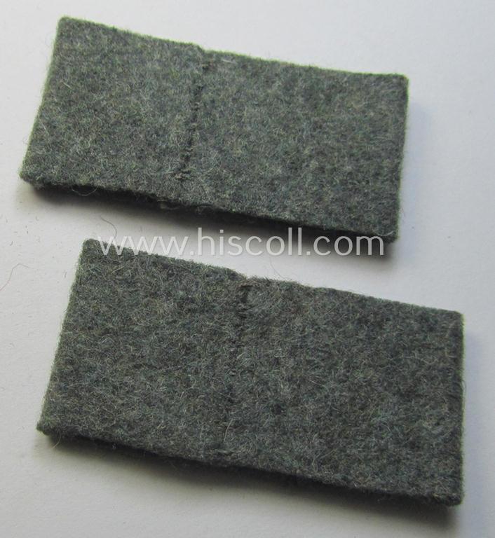 This is an attractive - truly matching and/or fully identical! - pair of WH (Heeres) 'Pioniere'-related, so-called: regimental shoulderstrap-'slip-ons' (ie. 'Schulterstück-Überschuben') as was specifically intended for usage by a: 'Soldat des Pionier-Bataillons 142' and that comes in an overall very nice- (and I deem simply never worn- nor used- ie. still 'virtually mint unissued'-), condition. The pair is neatly 'machine-stitched'-embroidered in the typical black- (ie. 'schwarzer'-) coloured wool by means of so-called: 'Kurbelstickerei' as to be expected. Simply a nice opportunity to aquire an attractive pair of 'Pioniere'-related 'Überschuben' that is - I deem - accordingly priced: great to 'decorate' a pair of 'schwarzer'-piped 'Heeres'-shoulderstraps or ideally fitted to keep in any insignia-collection!