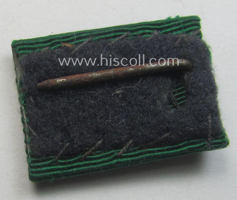 This is an attractive - and actually hard to find! - single-pieced, WH (Heeres ie. 'Ostvölker'-related) ribbon-bar (ie. 'Band- o. Feldspange') as was specifically intended for a: 'Tapferkeitsauszeichnung für Angehörige der Ostvölker, 3. Klasse in Bronze mit Schwn.' (or: 'Ostvölker' bronze-class service-medal for shown bravery on the Eastern Front with swords) and that comes in an overall nice- (albeit moderately used- and/or worn-), condition. The ribbon-bar is of the regular (ie. larger) ribbon-bar-size and measures approximately 2,5 cms. in length as is more often encountered (as can be seen on the pictures). The 'Spange' comes in a nice condition overall and is of course functional: it is, neatly 'backed' with a piece of greyish-black-coloured wool (as can be seen on the pictures). The piece retains its pin-attachment but is void of a catch (as can be seen on the pictures). This particular example was just moderately worn ie. used: it does show some usage-marks and/or minimal aging ie. wear. Simply an attractive (and not that easily found!) single-pieced, WH (Heeres ie. 'Ostvölker'-related) 'Band-/Feldspange': great to decorate almost any 'Ostvölker'-related tunic!