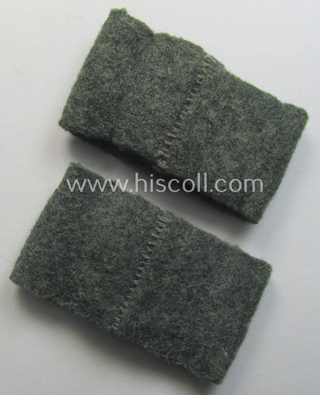 This is an attractive - truly matching and/or fully identical! - pair of WH (Heeres) 'Artillerie'-related, so-called: regimental shoulderstrap-'slip-ons' (ie. 'Schulterstück-Überschuben') as was specifically intended for usage by a: 'Soldat des Artillerie-Regiments 72' and that comes in an overall very nice- (and I deem hardly worn- nor used- ie. still 'virtually mint'-), condition. The pair is neatly 'machine-stitched'-embroidered in the typical bright-red- (ie. 'hochroter'-) coloured wool by means of so-called: 'Kurbelstickerei' as to be expected. Simply a nice opportunity to aquire an attractive pair of 'Artillerie'-related 'Überschuben' that is - I deem - accordingly priced: great to 'decorate' a pair of 'roter'-piped 'Heeres'-shoulderstraps or ideally fitted to keep in any insignia-collection!