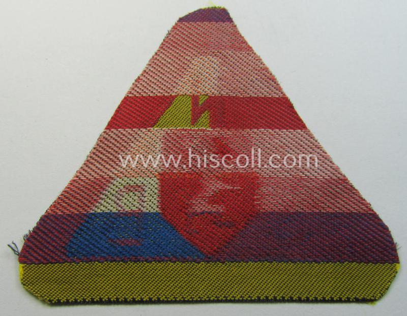 Presumably Dutch-produced example of an early-pattern (and neatly machine-woven!) NSB- (or: 'Nationaal Socialistische Beweging'-) related arm-patch as was intended for usage on the black-coloured shirts and/or tunics