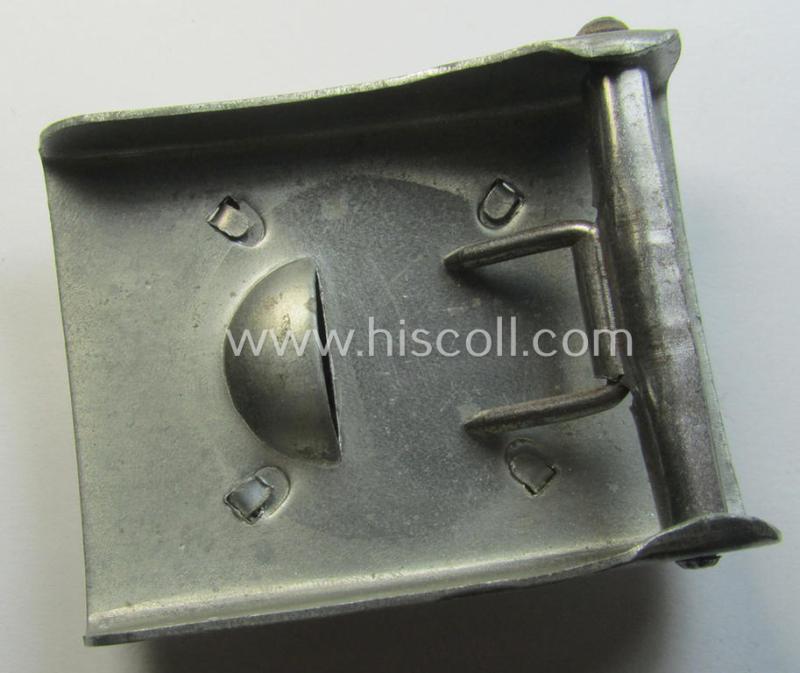 Police- (ie. 'Polizei') 'standard'-pattern, silver-toned- and zinc-based belt-buckle (ie. 'Koppelschloss für Mannschaften u. Uffz. der Polizei') being a non-maker-marked example