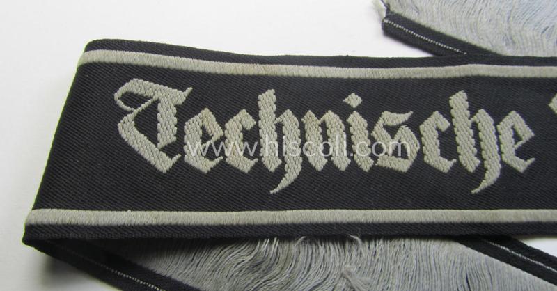 'Technische Nothilfe' (ie. 'TeNo') cuff-title (ie. 'Ärmelstreifen') entitled: 'Technische Nothilfe' being an EM- (ie. NCO-) pattern example as was woven in the neat 'BeVo'-weave pattern