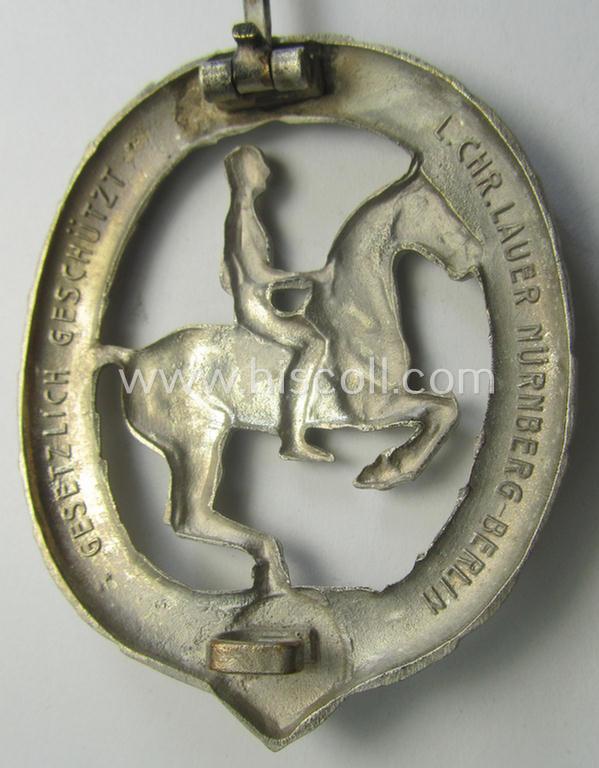 'Deutsches Reiterabzeichen der 2. Klasse (ie. 'in Silber') being a clearly maker- (ie. 'L.Chr. Lauer'-) marked example that comes in an overall nice- (albeit moderately used- ie. worn-), condition