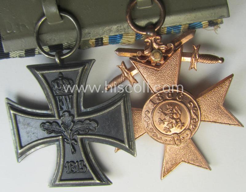 WWI-period, so-called: 'Doppelspange' (being of the neat 'detachable'-pattern!) showing resp. a: 'Bayern Militär-Verdienstkreuz 3. Kl. mit Schwn.' and a WWI-pattern: 'EK II. Klasse'