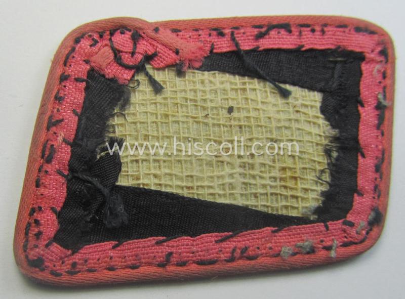 Waffen-SS - so-called: 'BeVo'-woven, enlisted-mens'- (ie. NCO-) type so-called: 'runes'-collar-tab being a neatly pink-piped example as was intended for usage by the soldiers (ie. NCOs) of the Waffen-SS Panzer-troops throughout the war