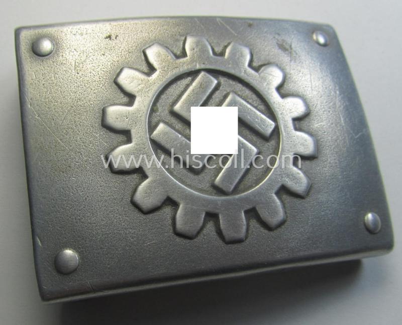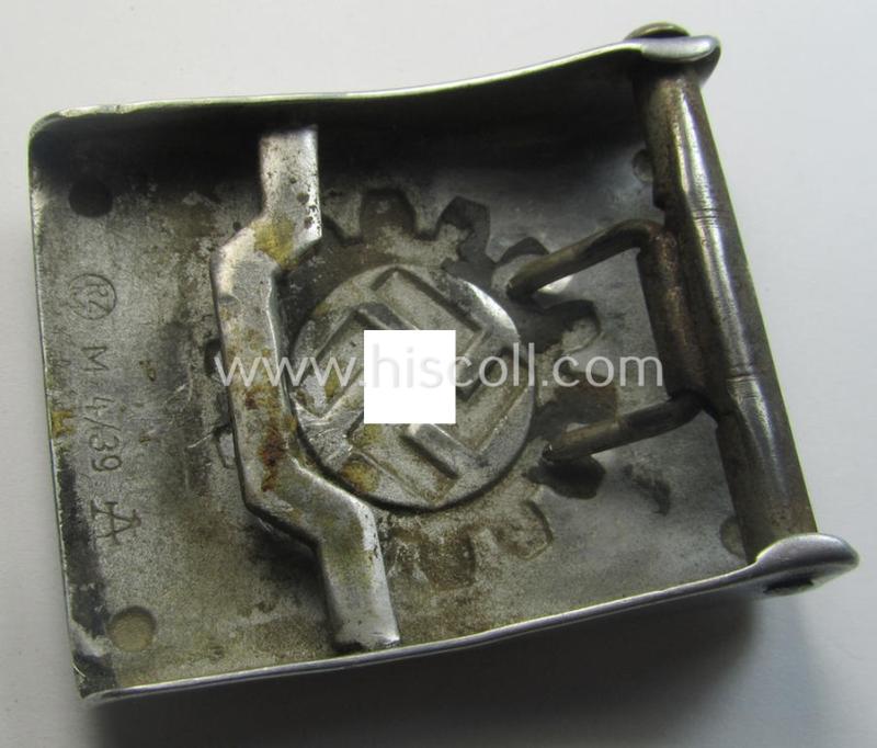 'DAF' ie. 'Werkschar'-related enlisted-mens'- (ie. NCO-) type belt-buckle being a maker- (ie. 'A'- and/or: 'RzM M4/39'-) marked example that comes in a moderately worn- and/or used, condition