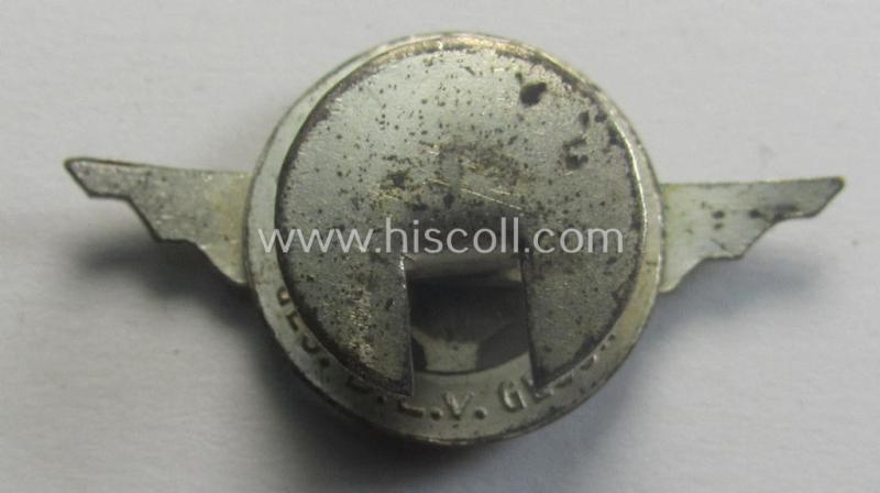 This is a very attractive - and actually very unusally found! - neatly enamelled and truly luxuriously-styled, so-called: DLV (ie. 'Deutscher Luftsport Verband') miniature membership lapel-pin (ie. 'Mitgliedsabzeichen für den Zivilanzug') being a neatly maker- (ie. 'C. Poellath - Schrobenhausen'-) marked example that comes in an overall very nice- (albeit I deem minimally used- ie. most certainly worn- and/or used-), condition. The tiny piece - which is executed in bright-silver-toned metal (ie. 'Buntmetall') and that also shows a: 'Ges.Gesch.'-patent-pending-designation - has an approximate 'wingspan' of only 2,4 cms. and comes mounted onto its still functional buttonhole- ie. 'Knopfloch'-set-up. It retains a fully undamaged enamelled surfaced and shows a clearly present makers'-designation on its back that reads: 'C. Poellath - Schrobenhausen': next to this ut also shows a: 'Ges. D.L.V. Gesch. '-patent-pending-designation (as can be seen on the pictures). Simply a very attractive (and I deem early- ie. pre-war-period!) 'Mitgliedsabzeichen für den Zivilanzug' that belonged to an official who served within the predecessor of the German Luftwaffe being the: 'Deutscher Luftsport Verband'!